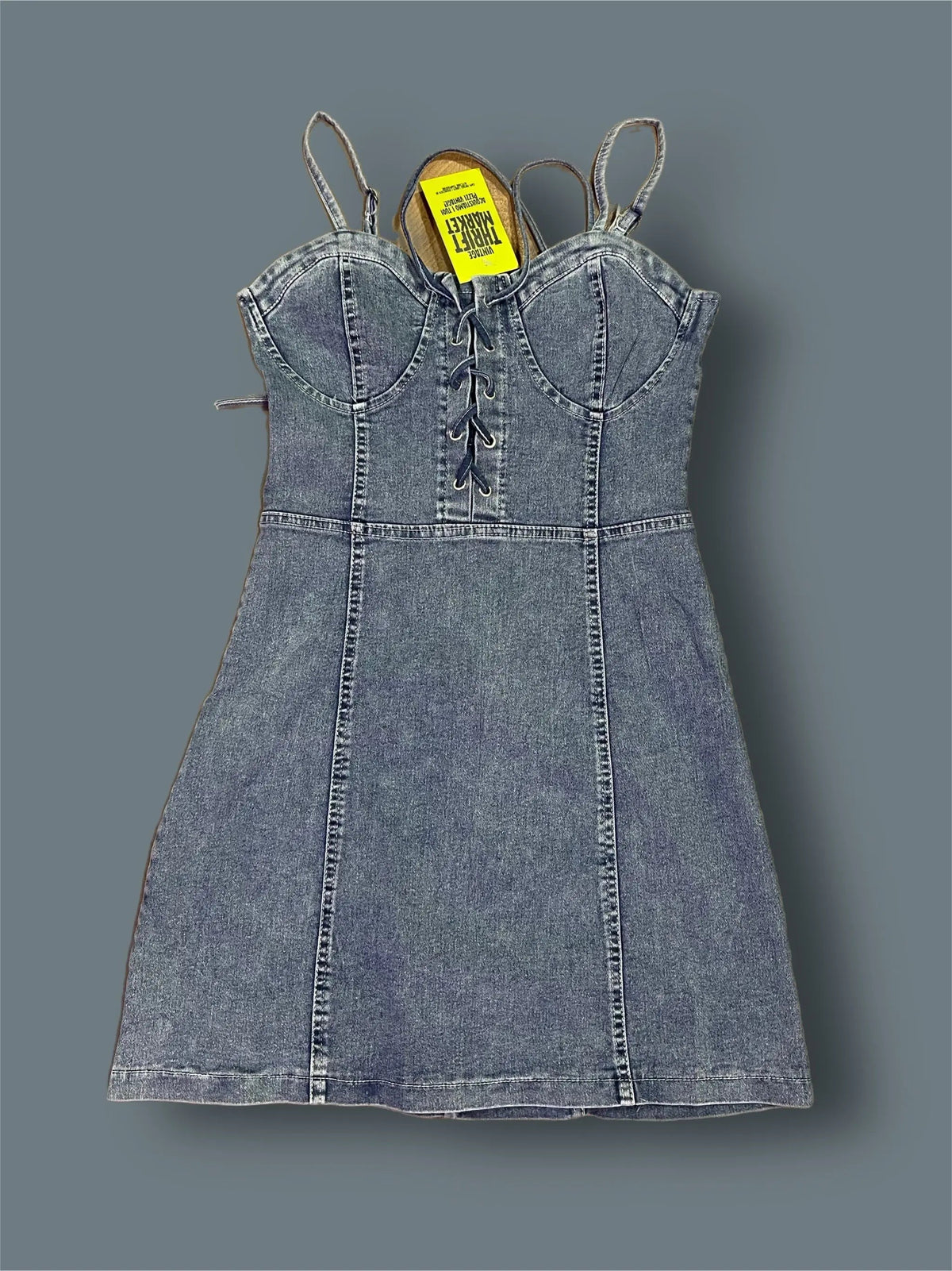 Low-cut lace-up mini jeans dress, one size fits all- Thriftmarket| badpeople.it