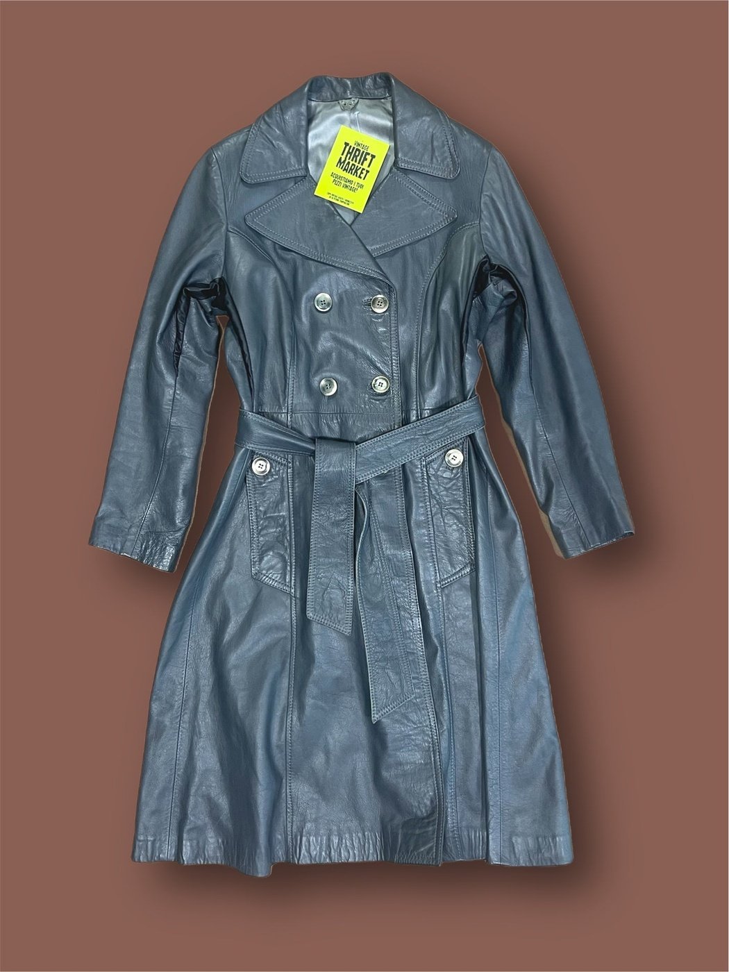 Trench cappotto in pelle vintage grigio tg 42- Thriftmarket| badpeople.it