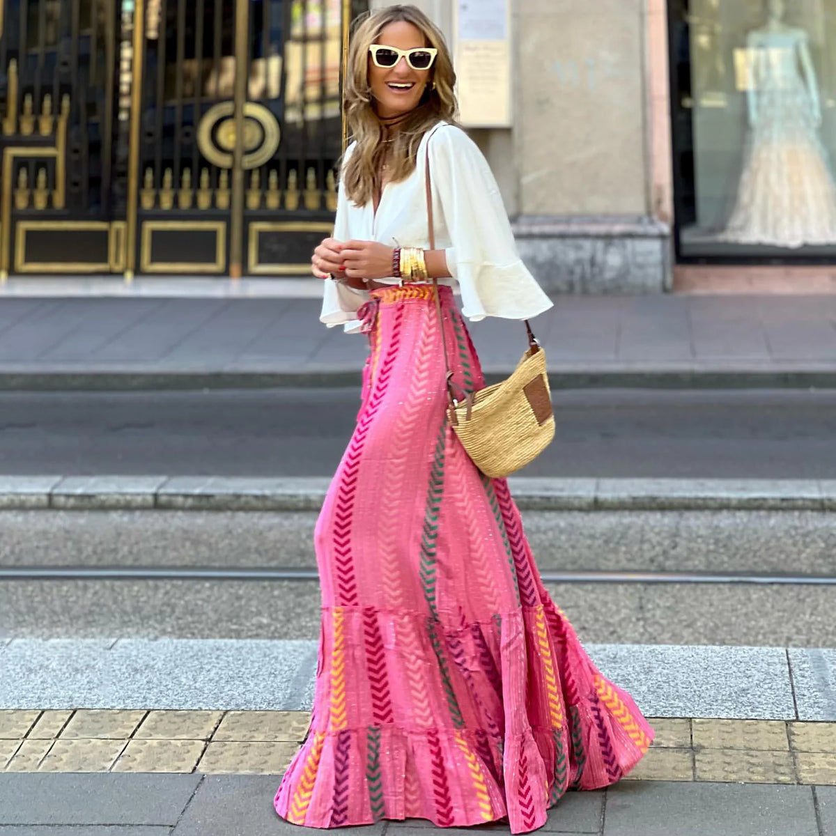 Skirt Beach Holiday Print Lace-up Skirt Casual Long Skirt - Pink / XL- MUST HAVE (immagine 5)| badpeople.it