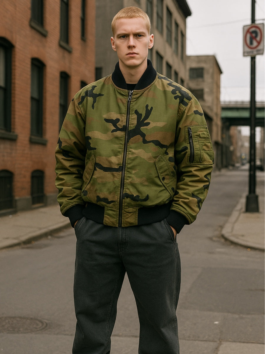 Giubbotto bomber mimetico camouflage uomo - M- DRIP SOCIETY| badpeople.it
