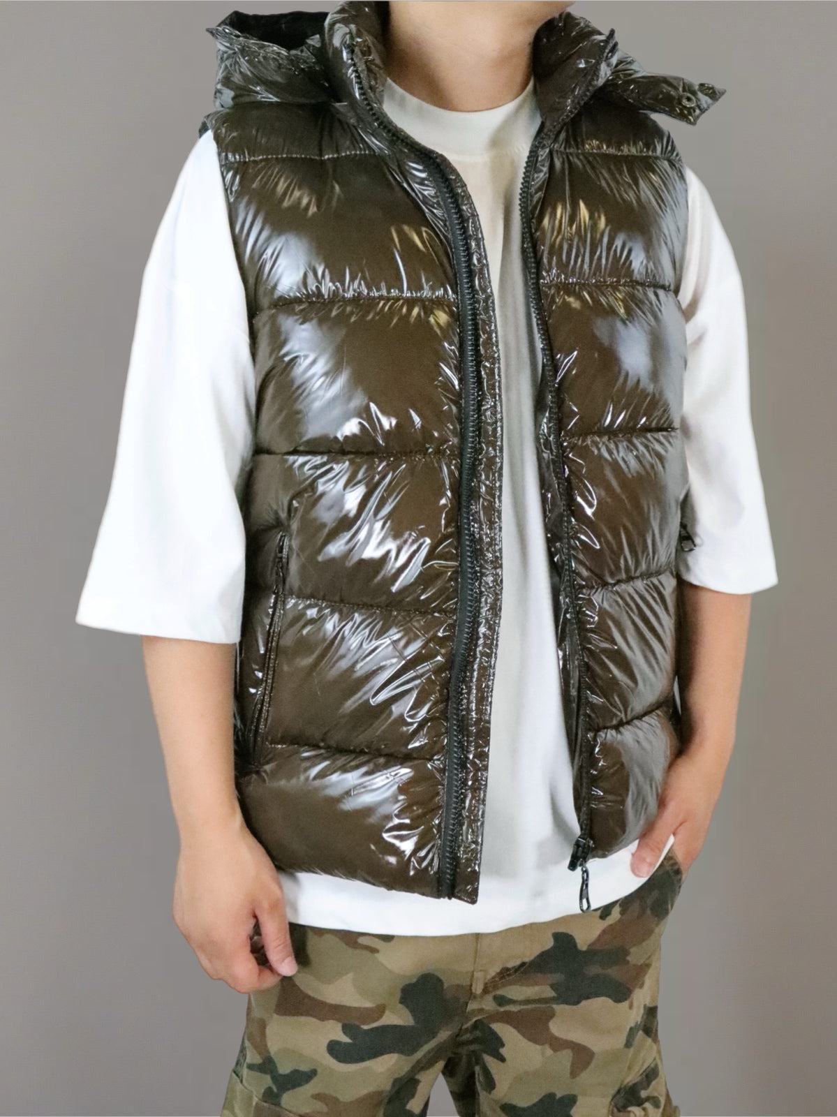 Smanicato lucido cappuccio marrone uomo
